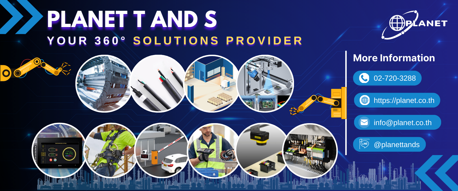 บริษัท แพลนเนท ที แอนด์ เอส จำกัด ก่อตั้งขึ้นในปี พ.ศ. 2540 ด้วยความมุ่งมั่นในการเป็นผู้นำด้านการให้บริการงานออโตเมชั่น งานโซลูชั่น สินค้าเทคโนโลยีที่ทันสมัย เพื่อตอบสนองความต้องการให้กับลูกค้าทุกประเภทธุรกิจในทุกภาคอุตสาหกรรมของไทย