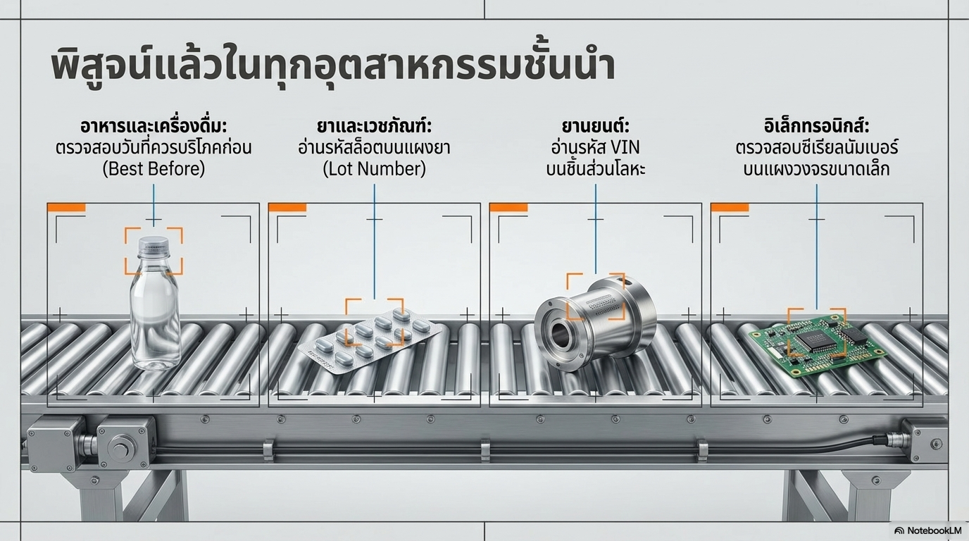 ระบบ OCR ถูกนำไปใช้งานในหลากหลายจุดของกระบวนการผลิต ครอบคลุมอุตสาหกรรมหลักดังนี้
