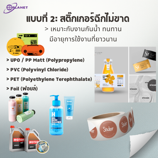 แบบที่ 2: สติ๊กเกอร์ฉีกไม่ขาด (ฟิล์มพลาสติก) > กันน้ำ ทนทาน มีอายุการใช้งานที่ยาวนาน