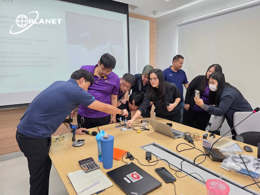 บรรยากาศในห้องอบรมเต็มไปด้วยความกระตือรือร้น ทีมงาน Planet T and S ได้ทดลองตั้งค่าและทดสอบเซนเซอร์กับวัตถุจริงหลากหลายรูปแบบ เพื่อให้มั่นใจว่าเมื่อเรานำเสนอโซลูชันให้กับลูกค้า นั่นคือคำตอบที่ "ใช่" และ "คุ้มค่า" ที่สุด