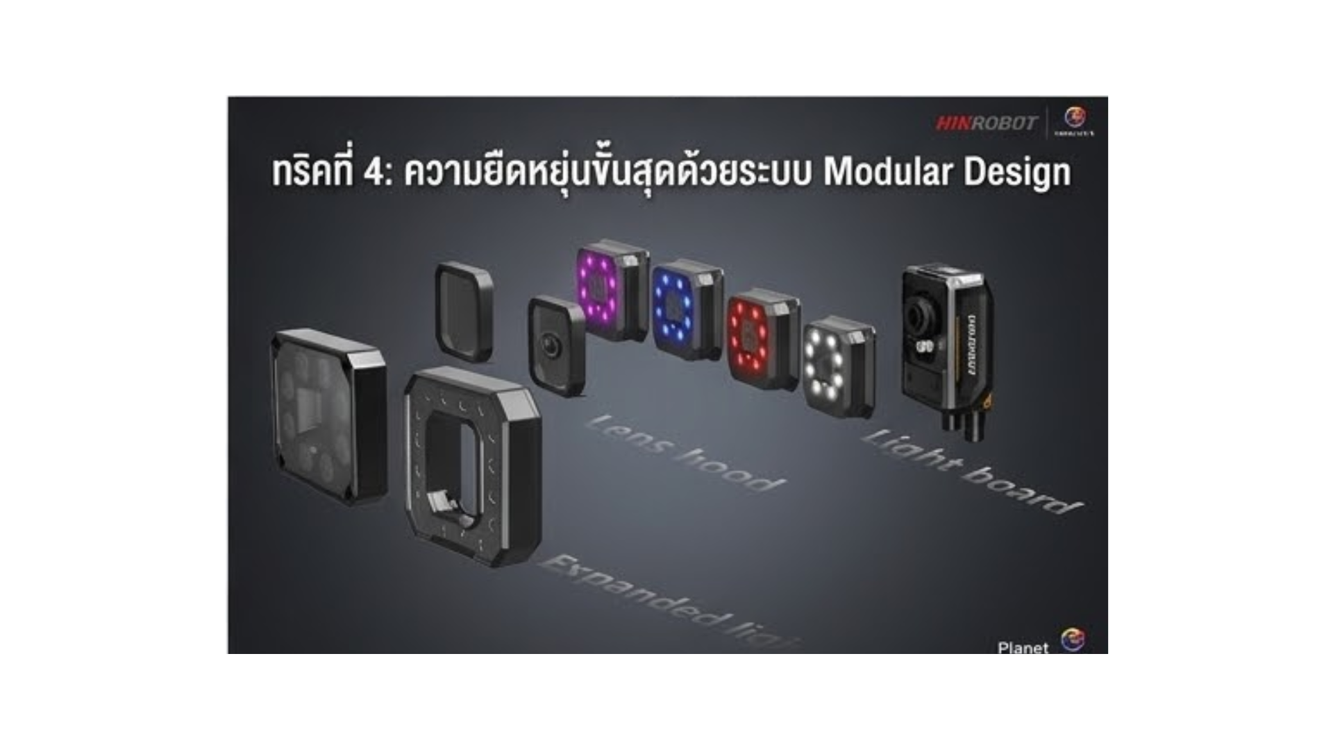 จุดที่น่ารู้: คุณสามารถเลือกเปลี่ยนเลนส์ได้ทั้งแบบ C-Mount (สำหรับงานที่ต้องการความละเอียดและระยะโฟกัสเฉพาะเจาะจง) และ M12-Mount รวมถึงสามารถสับเปลี่ยนชุดโคมไฟ (Modular Lighting) หรือต่อไฟแฟลชภายนอกแบบ Multi-color ได้ ทริคคือหากโปรดักส์ในไลน์ผลิตมีการเปลี่ยนแปลงรูปร่างหรือสีในอนาคต คุณแค่อัปเกรดชิ้นส่วนเลนส์หรือไฟแสงสว่าง แทนที่จะต้องซื้อ Smart Camera ตัวใหม่ทั้งระบบ